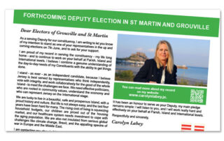 Thank you all for your overwhelming support since my announcement to stand in the forthcoming election for Deputy of Grouville and St Martin.